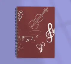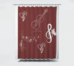 Un design musicale creativo su sfondo bordeaux - con solitario a cuore, violino, spartito e farfalla. Questo motivo è disponibile in vari prodotti: poster, tazza, cuscino, quaderno o tenda da doccia. Perfetto per gli amanti della musica, gli artisti e tutti coloro che amano la musica visiva.