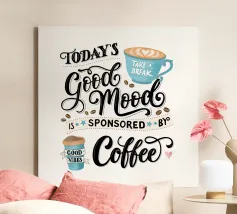 Un motivo divertente per chi ama il caffè più di ogni altra cosa. Che si tratti di caffellatte, cappuccino, espresso, caffè macchiato, ecc. questo disegno è qualcosa di speciale. Questo design è qualcosa di molto speciale. Il carattere è completamente scritto a mano e non proviene da un font per computer. Questo lettering a mano è quindi una composizione davvero unica. È accompagnata da illustrazioni d'atmosfera con una tazzina da caffè, una tazza da caffè e molti chicchi di caffè. Un must in cucina per gli amanti del caffè. Ottimo anche per il luogo di lavoro. E un poster perfetto per le caffetterie e i piccoli pub alla moda.