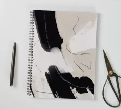 Una composizione dinamica di pennellate in bianco e nero crea un'immagine audace e astratta. I colori contrastanti e le linee gestuali suggeriscono movimento ed emozione all'interno dell'opera.