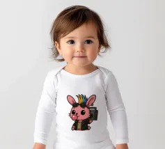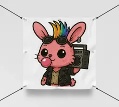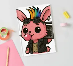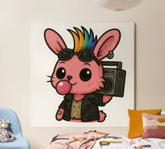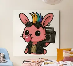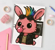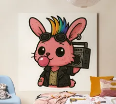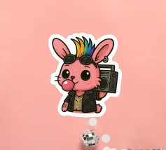 Lasciatevi conquistare dall'energia di questo adesivo punk bunny con i suoi occhiali arrotondati, la cresta multicolore e lo stereo portatile retrò. Ideale per ottenere un look creativo e grintoso su qualsiasi superficie.