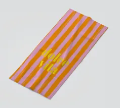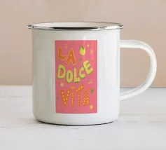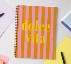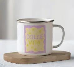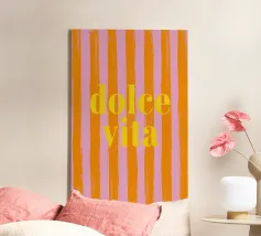 Questo poster colorato porta il termine "dolce vita" in una prospettiva nuova e più profonda. L'audace scritta gialla su strisce verticali in caldo arancione e rosa sembra un raggio di sole sulla carta: vibrante, pieno di vita e di luce. Ma dietro l'elegante tipografia non c'è solo l'italianità: è un invito a vivere con consapevolezza.