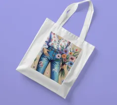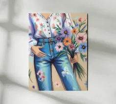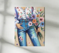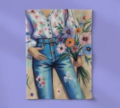 Ritratto di donna calma e rilassata con un mazzo di fiori.