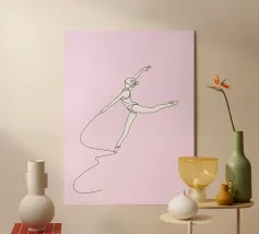 Graziosa line art minimalista di una donna ginnasta, che cattura forza ed eleganza. Perfetto per gli appassionati di sport e per le decorazioni ispirate alla ginnastica.