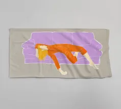 Questo disegno cattura la sensazione di uno di quei giorni in cui non c'è bisogno di fare nulla: basta sdraiarsi, respirare, essere. Una donna in tuta arancione pende rilassata su un divano viola, come se fosse immersa nel suo mondo di pensieri.
