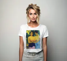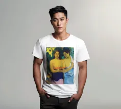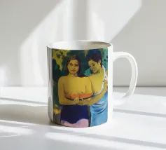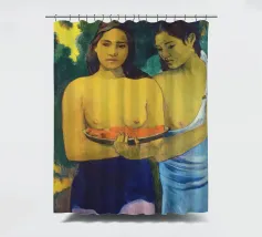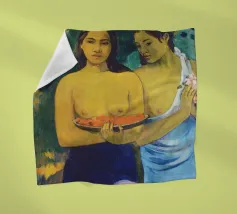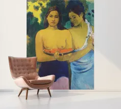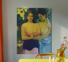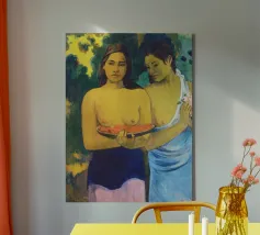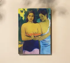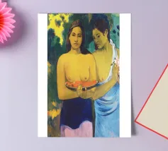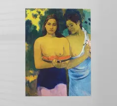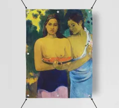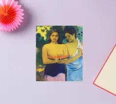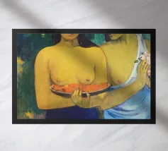 Due donne tahitiane (1899) di Paul Gauguin cattura la serena bellezza e l'audace presenza della vita polinesiana. Con colori vibranti e profondità simbolica, quest'opera iconica riflette la ricerca di Gauguin di purezza e semplicità lontano dalle convenzioni occidentali. Paul Gauguin, quadro di donne tahitiane, stampa post-impressionismo, arte esotica, poster di artista francese, dipinto del XIX secolo, riproduzione d'arte classica, opera d'arte tropicale, ritratto femminile da parete, stampa di patrimonio culturale, opera d'arte modernista, poster d'arte da museo, stampa di dipinto famoso, arte simbolica.