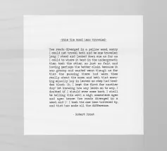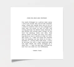 "Two Roads Diverged in A Yellow Wood" "Take the road Less Travelled" - Robert Frost Citazione minimalista, citazioni in bianco e nero per macchina da scrivere.