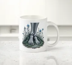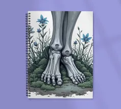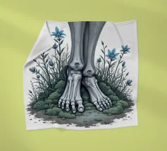 Le ossa nude incontrano la terra in un tenero abbandono. I suoi piedi - silenziosi, scheletrici - riposano nel muschio, circondati da fiori blu che non piangono, ma fioriscono. Non c'è fretta in questo finale. Non è fuggita, non è caduta. È rimasta, e la natura le è stata grata.
