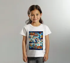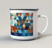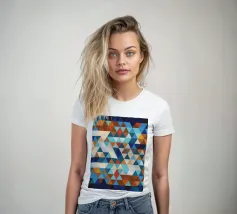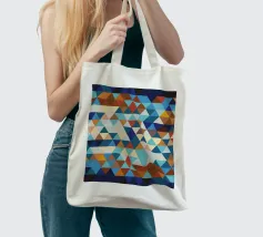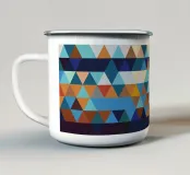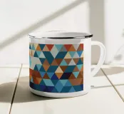Motivo geometrico triangolare. I triangoli in blu e marrone si fondono in una composizione minimalista dall'aspetto tranquillo. Un design chiaro e moderno con toni di colore naturali per ambienti eleganti.