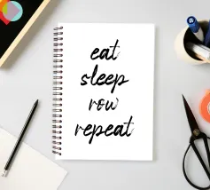 Eat Sleep Row Repeat Typography Word Art citazione minimalista in bianco e nero.