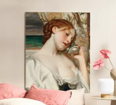 Echi marini - Frederic Leighton (1830-1896): Un affascinante dipinto del XIX secolo che incarna la grazia, l'eleganza e la bellezza classica dell'opera di Leighton. L'opera raffigura un paesaggio marino sereno con figure eteree, che catturano sia il ritmo delle onde che l'armonia della forma umana. Noto per la sua padronanza del colore, della composizione e della tecnica neoclassica, Leighton crea un'opera senza tempo che evoca tranquillità e raffinatezza. Ideale come stampa d'arte o poster, porta raffinatezza, patrimonio artistico ed eleganza classica in qualsiasi casa, galleria o ufficio.