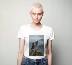 Un incontro malinconico tra due anime, appollaiate sopra una scogliera di pietra sotto un cielo pesante, che sussurra di vite passate e di nostalgia.