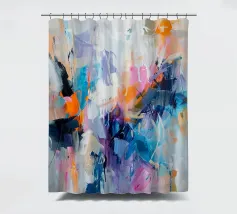 Un dipinto astratto sereno e dinamico in cui i pastelli morbidi incontrano pennellate audaci di arancione, blu e viola. Il gioco di texture fluide crea un senso di movimento e di calma, come se la luce stessa fosse rifratta attraverso strati di memoria e immaginazione. Quest'opera d'arte cattura sia la tranquillità che l'intensità, offrendo un viaggio visivo che cambia a ogni sguardo.
