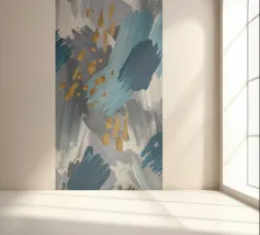 Rapide striature di cobalto si alternano ad audaci accenti dorati di intensità pittorica.