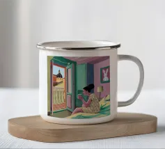 L'opera mostra una donna seduta su un letto in una stanza illuminata dalla luce del sole che entra da una finestra. La donna guarda verso l'esterno, ma la sua espressione è malinconica e introspettiva, come se fosse in bilico tra la realtà dell'interno e la promessa del mondo esterno.
