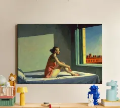 "Morning Sun" (1952) è uno dei dipinti più iconici di Edward Hopper, artista noto per la sua profonda esplorazione della solitudine e dell'isolamento nella vita americana moderna.