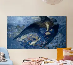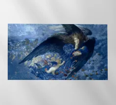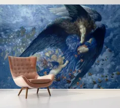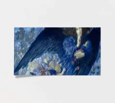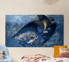 Night with Her Train of Stars (La notte con il suo treno di stelle) è un affascinante dipinto di Edward Robert Hughes, che raffigura la personificazione della Notte come una figura serena drappeggiata in abiti fluenti, accompagnata da una scia di stelle e figure cherubiche. La composizione emana tranquillità e bellezza onirica, caratteristiche della maestria di Hughes nel fondere dettagli preraffaelliti e temi simbolisti. Quest'opera è perfetta per chi apprezza i motivi celestiali e il romanticismo dell'arte del primo Novecento.