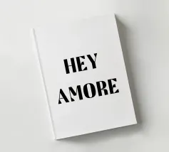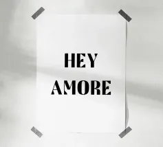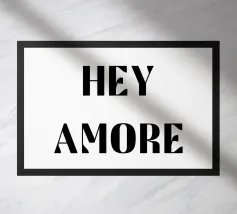 "Hey Amore" - una tipografia chic e affettuosa in bianco e nero che celebra la gioia della famiglia e dell'amore. Perfetta per i matrimoni e come poster romantico.