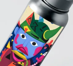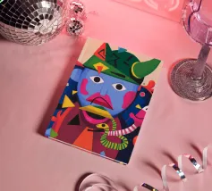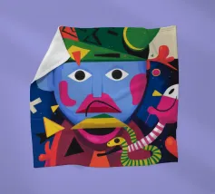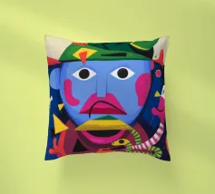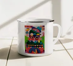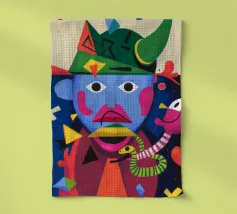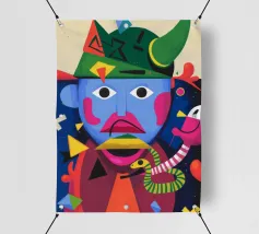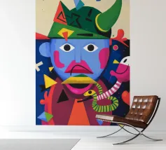 In "Whimsical Enigma", lo spettatore è invitato a entrare in un vibrante paesaggio onirico in cui si scontrano elementi surreali e astratti. Una figura dal volto blu e dai lineamenti esagerati si trova al centro, con i suoi grandi occhi espressivi e le sue labbra rosa acceso che aggiungono un tocco giocoso di eccentricità.