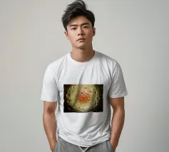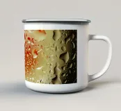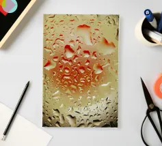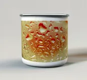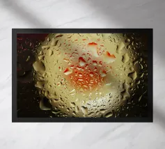 Scoprite l'impressionante composizione di un cerchio giallo brillante che occupa quasi l'intera superficie del quadro. Un rosso intenso brilla al centro, mentre lo sfondo nero fa da sfondo drammatico. Le gocce d'acqua riflettenti sulla superficie conferiscono all'opera un tocco vivace e dinamico.