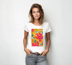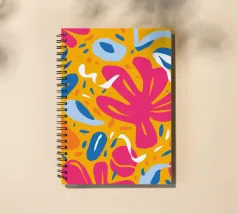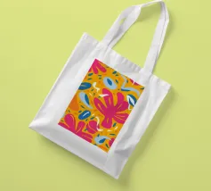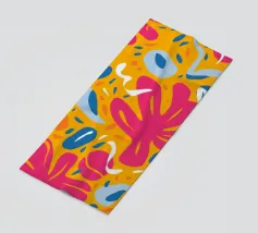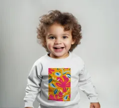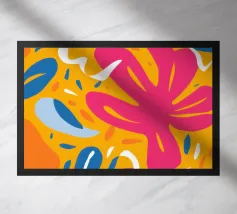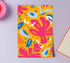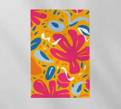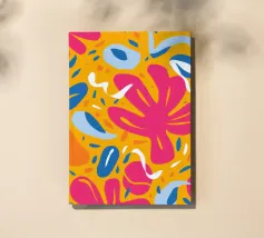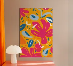 Un'opera astratta vibrante ed energica, piena di forme giocose e sovrapposte in rosa caldo, giallo e arancione, che evoca una sensazione di pura gioia, celebrazione e abbandono creativo.