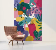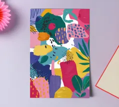 Una composizione astratta altamente energica e caotica, che esplode in una moltitudine di colori, forme e texture, come una gioiosa esplosione di creatività.