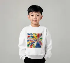Un dipinto astratto esplosivo ed espressivo di un bouquet floreale in un vaso, che utilizza pennellate audaci e gestuali e un mix vibrante e caotico di colori.