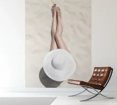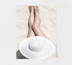 Questo motivo da spiaggia minimalista mostra una scena elegante in cui le gambe sono distese sulla sabbia soffice e un elegante cappello da sole completa l'immagine. I toni caldi e naturali dei colori e la calma della composizione trasmettono una sensazione di pura vacanza e un'atmosfera rilassata ed estiva. Che si tratti di un murale, di un cuscino, di una cover per cellulare o di una tazza, questo disegno porta la sensazione del sole e della sabbia in ogni casa. Ideale per chi ama un'estetica semplice e moderna e il fascino di una giornata di sole in spiaggia. Un motivo senza tempo per gli amanti dell'estate e dello stile minimalista.
