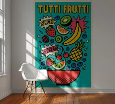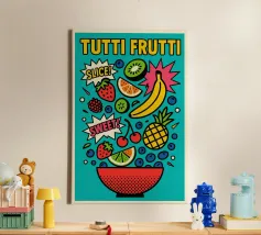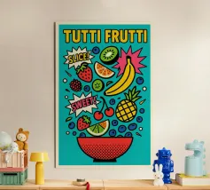 Tuffatevi in un'ondata di freschezza con questo poster in stile pop art "Tutti Frutti". Una composizione vitaminica e gioiosa in cui fragole, kiwi, banane e altri frutti prendono vita in uno stile grafico audace e colorato. Perfetto per ravvivare una cucina, un salotto o un caffè nel cuore di New York, porta con sé un'energia dolce e retrò che evoca i fumetti americani e l'estate eterna. Un must per gli amanti del design fruttato e delle vibrazioni solari!