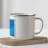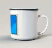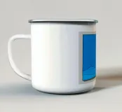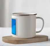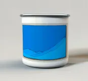Questa immagine grafica e minimalista presenta un paesaggio astratto dai toni blu intenso. La scena è divisa in due aree principali: un ampio e uniforme cielo azzurro e un paesaggio montuoso o collinare stilizzato in un ciano leggermente più scuro e luminoso nella parte inferiore. Le forme sono definite da sottili linee di contorno nere che conferiscono all'immagine un'estetica da cartone animato o serigrafica. La composizione è calma e bidimensionale, con la riduzione a pochi colori e linee chiare che creano un'atmosfera fredda e ossessionante.