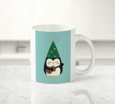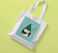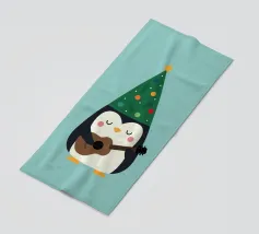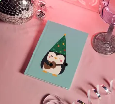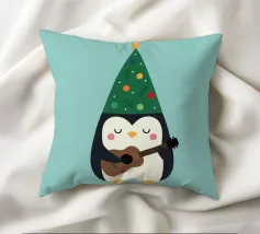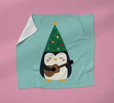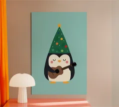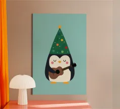 La piccola Pinguina indossa il suo allegro cappello da albero di Natale, imbraccia la chitarra e riempie la notte innevata di soffici "fa la la la~".