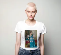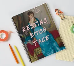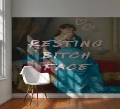 Abbracciate l'arguzia moderna con "Resting Bitch Face", un'accattivante stampa pop art che fonde abilmente la ritrattistica classica con una frase contemporanea e umoristica. L'opera presenta un'elegante figura storica in uno splendido abito blu, che si tampona gli occhi con un fazzoletto, con un'espressione sottilmente non sorridente o pensierosa. Il testo in grassetto, di colore rosa caldo, "RESTING BITCH FACE", si sovrappone all'immagine, trasformando la scena senza tempo in un'affermazione spiritosa e di facile comprensione. I sottili cuori rosa in alto aggiungono un tocco giocoso. Perfetto per aggiungere personalità e spensieratezza a qualsiasi interno moderno. Realizzato a un prezzo
