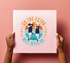 Questo motivo è uno slogan motivazionale, soprattutto per chi corre e fa jogging. Forza, spingiamoci insieme. Bellissimi i colori a contrasto arancione e turchese. E una tipografia molto elegante. Per gli atleti, ma anche in senso figurato come motivazione a sostenersi a vicenda e a superare se stessi. Ogni passo, per quanto piccolo, è un progresso, un ulteriore sviluppo. Un'ottima ispirazione anche per i negozi di sport e i centri fitness.