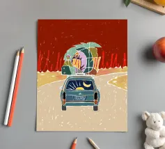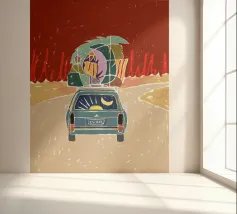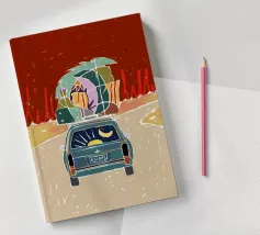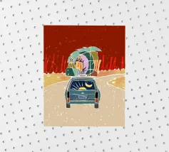 Pack Up & Escape roadtrip viaggio mezzanotte tipografia all'aperto auto