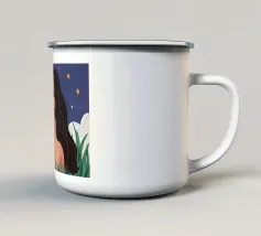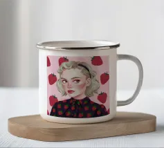 Questo dipinto raffigura una persona con capelli corti e scuri ornati da un nastro bianco. Il soggetto indossa una camicia a scacchi verde e lo sfondo è rosso, dando un'atmosfera retrò e affascinante.