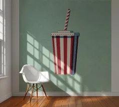 Questo design nostalgico presenta una tazza a righe bianche e rosse con una cannuccia a righe abbinata su uno sfondo verde menta. Le linee pulite e la palette di colori rétro ricordano il design dei diner americani e l'estetica della pop art degli anni '50. Perfetta per gli amanti del look vintage e ideale per creare un'atmosfera giocosa ed elegante.