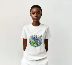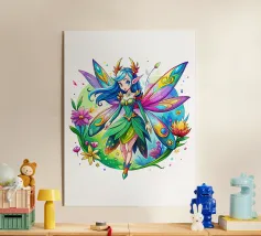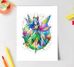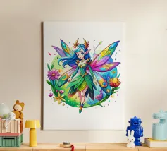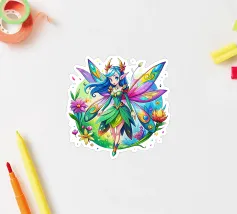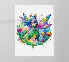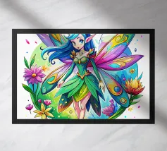 Questa splendida illustrazione fantasy mostra una fata colorata con bellissime ali arcobaleno, circondata da fiori vivaci ed elementi botanici. Il suo aspetto etereo, con lunghi capelli blu e caratteristiche dettagliate da elfo, dona un tocco di magia a qualsiasi ambiente. Perfetto per gli appassionati di arte kawaii e anime, questo incantevole personaggio fatato incarna il fascino mistico della natura e della fantasia. Ideale per aggiungere un tocco stravagante ad adesivi, abbigliamento e arte murale, questo pezzo è un must per gli amanti delle creature magiche, delle fate dei giardini e dei disegni vibranti ispirati alla natura.