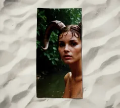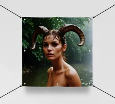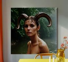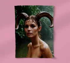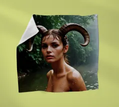 I suoi occhi spalancati brillano come se si fosse appena svegliata da un sogno. Le gocce sulla sua pelle brillano come luce liquida e il suo sguardo, sensuale e penetrante, cattura i segreti della foresta.