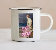 Basato su un ritratto tedesco anonimo (1909-1910 circa), questo pezzo reinterpretato capovolge il copione della rappresentazione primitiva e corretta della femminilità del primo Novecento. Qui, una figura in posa pensierosa alla sua scrivania diventa un'icona femminista - reclamando lo sguardo, incanalando il potere e servendo un atteggiamento vintage con un lato di sassass.