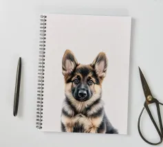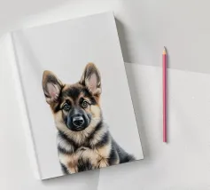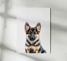 Questo simpatico ritratto illustrato di un piccolo pastore tedesco cattura la dolce innocenza dei cuccioli e irradia puro amore canino. Con la sua morbida pelliccia e il muso giocoso, è il motivo perfetto per gli amanti degli animali!