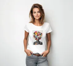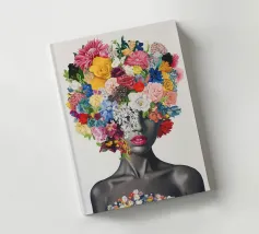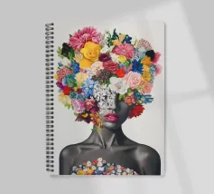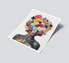 Questa vivace illustrazione mostra una donna con una corona di fiori il cui volto è parzialmente nascosto. In rosa, giallo e verde, la donna irradia primavera e moda, mentre il bouquet e gli accenti floreali sottolineano la bellezza della natura.