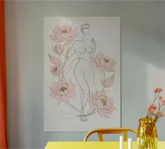 Una figura aggraziata emerge tra fiori sbocciati, simboleggiando la crescita, il rinnovamento e l'essenza del potere femminile. I delicati elementi floreali che si intrecciano con la figura mostrano bellezza e resilienza, celebrando la femminilità in tutte le sue forme. Le linee morbide e la tavolozza naturale evidenziano il legame tra femminilità e natura, creando un'opera d'arte che ispira amore per se stessi, fiducia e la bellezza della crescita interiore. Questo pezzo è perfetto per chiunque apprezzi la grazia, la bellezza e il potere trasformativo della natura.