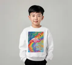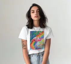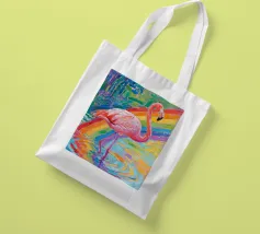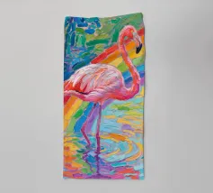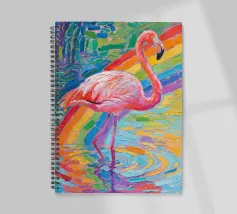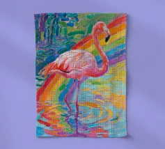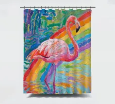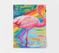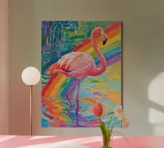 fenicottero in piedi nel fiume con uno sfondo arcobaleno e fauvismo pittura stile arte