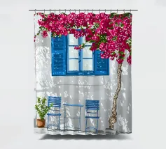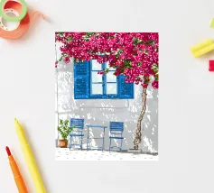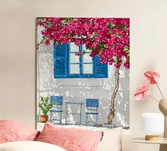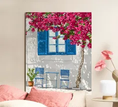 festa di due bouganville grecia santorini viaggio estate architettura bianco edificio tropicale esotico destinazione amore coppia sedie all'aperto