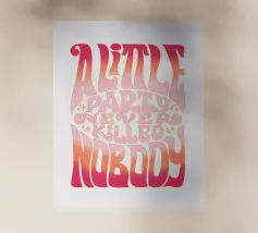 Un po' di festa e di celebrazione non fanno mai male a nessuno. Bellissimo design tipografico con colori forti e contrastanti. Lettere disegnate a mano in uno stile fresco e di ispirazione psichedelica.