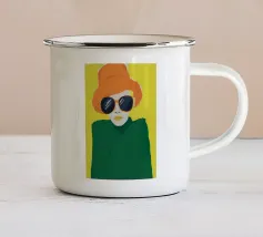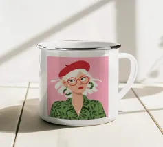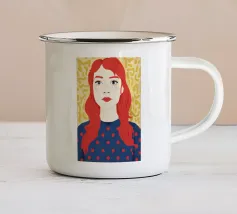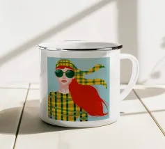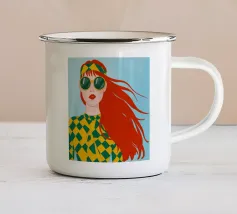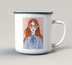 Questo vivace ritratto pop art presenta una rossa sicura di sé che indossa audaci occhiali verdi da gatta e un dolcevita giallo. Il mix di elementi retrò e moderni crea una divertente dichiarazione di intelligenza, stile e impavida individualità.