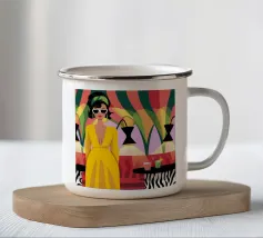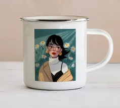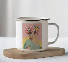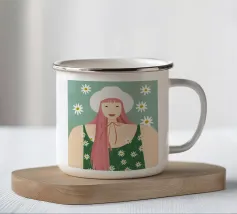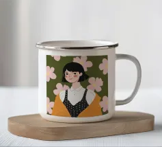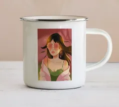 Il dipinto raffigura una persona con capelli corti e rosa su uno sfondo di fiori di ciliegio. La persona indossa una camicia verde e la composizione complessiva emana un senso di crescita e di sicurezza.