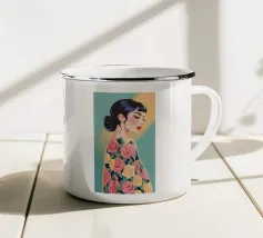 Il dipinto raffigura una persona con capelli corti e rosa su uno sfondo di fiori di ciliegio. La persona indossa una camicia verde e la composizione complessiva emana un senso di crescita e di sicurezza.