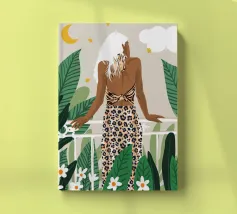 Fidati dell'attesa Bohemien animale stampa leopardo balcone casa posa moda stile di vita marrone donna persone boho luna