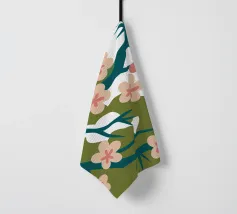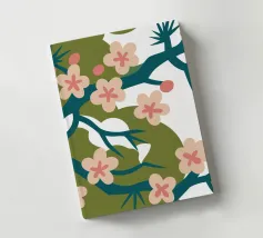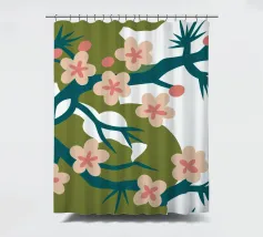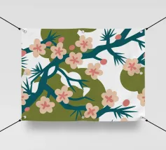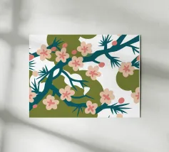 Questa illustrazione presenta fiori di sakura in stile giapponese, utilizzando una combinazione di colori verde, rosa e blu scuro. Questa illustrazione offre un aspetto elegante e pacifico.