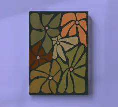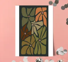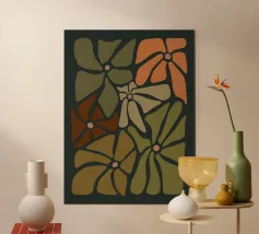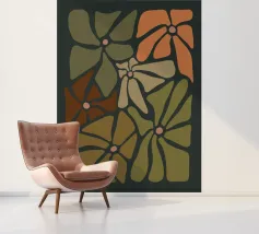 Fiori autunnali astratti retrò di metà secolo di colore arancione, crema, marrone, kaki e tan.